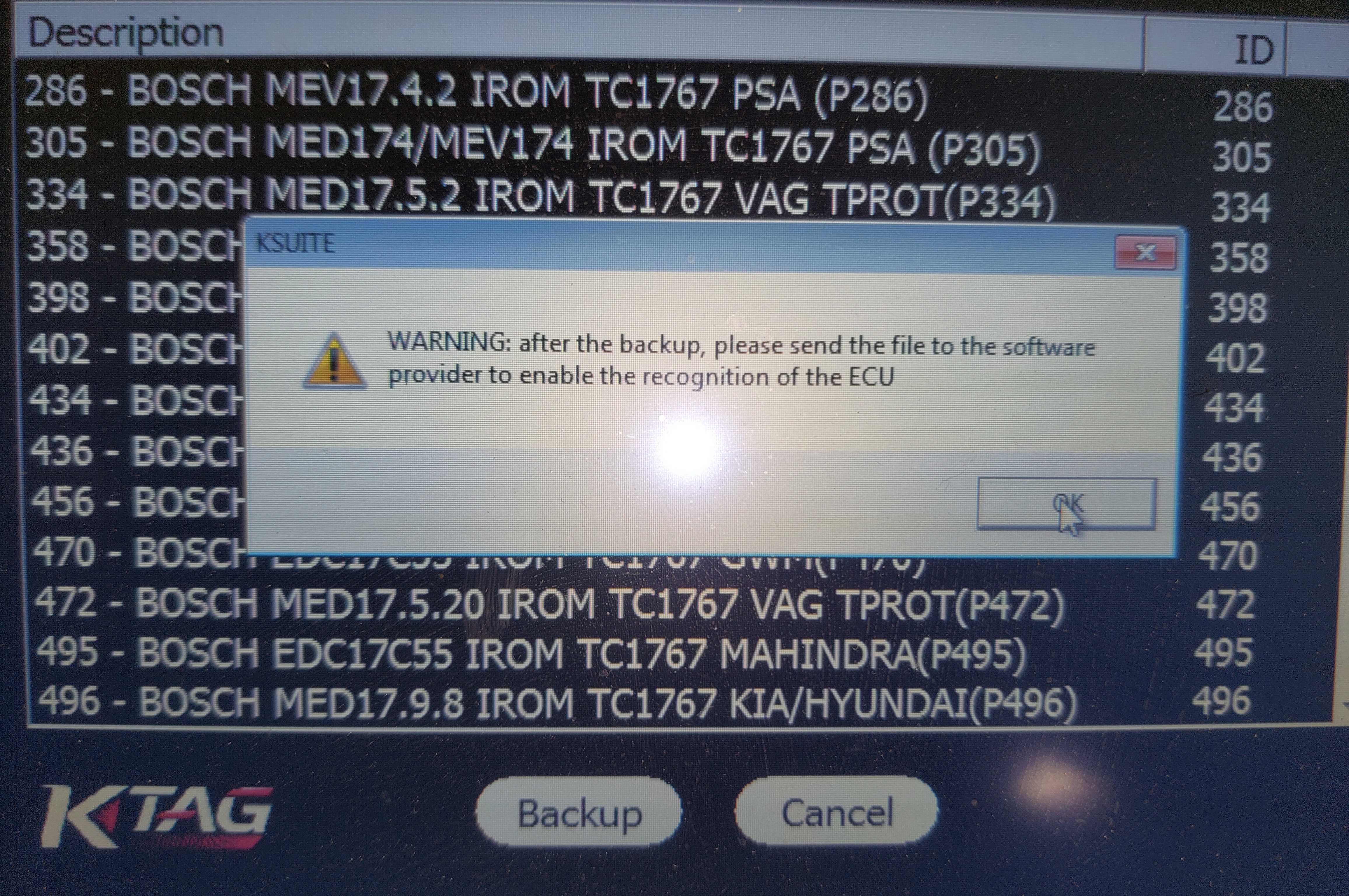И перед считывании прошивки выдаёт сообщение фото прикреплю, но и после этого сообщения ктаг считывает.