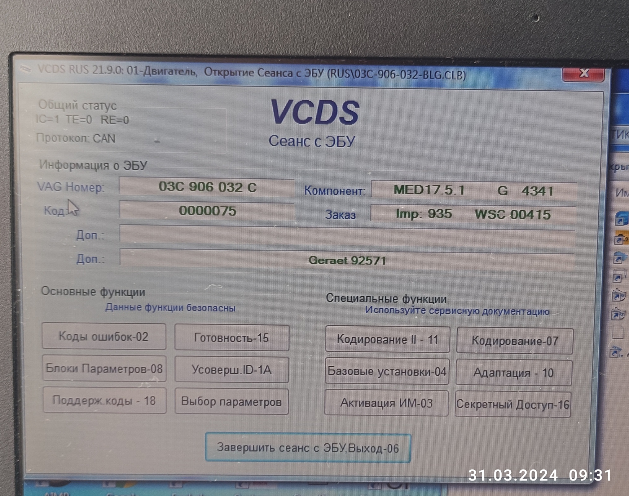 - Отключение иммобилайзера (IMMO off)