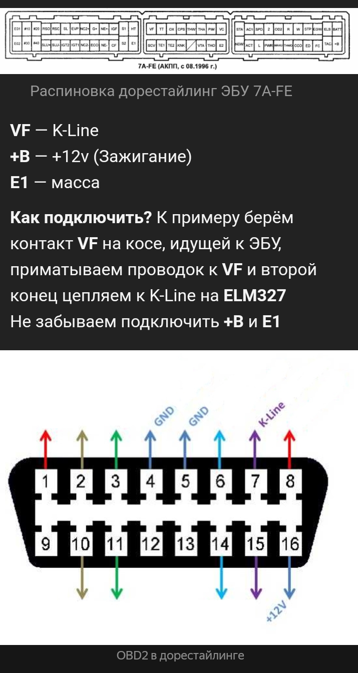 +- есть распиновки есть в КТАГе. Да и в интернете. Но К линию нужно смотреть из схемы автомобиля. Или прозвонить от колодки OBD