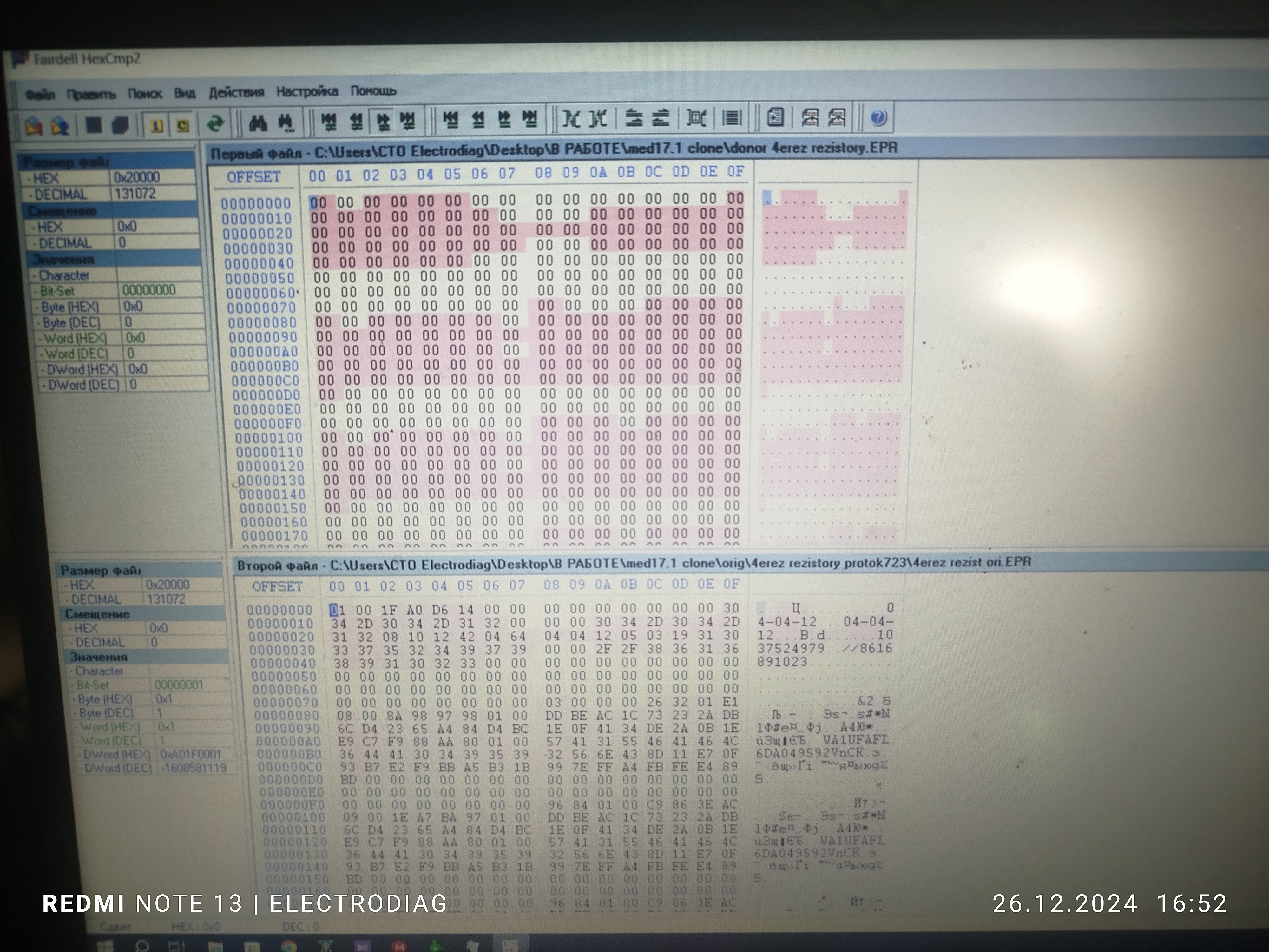 При помощи PCM Flash модуль 53 в буте были вычитаны прошивки с обоих блоков, прислали файл еепром подготоленный для записи в клон (иммо дата)