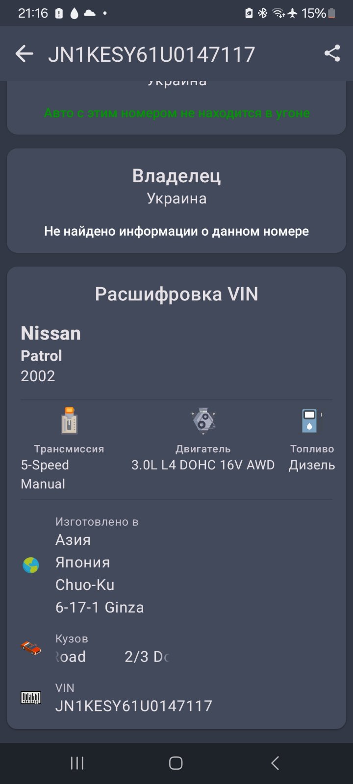 Марка модель авто: NISSAN PATROL