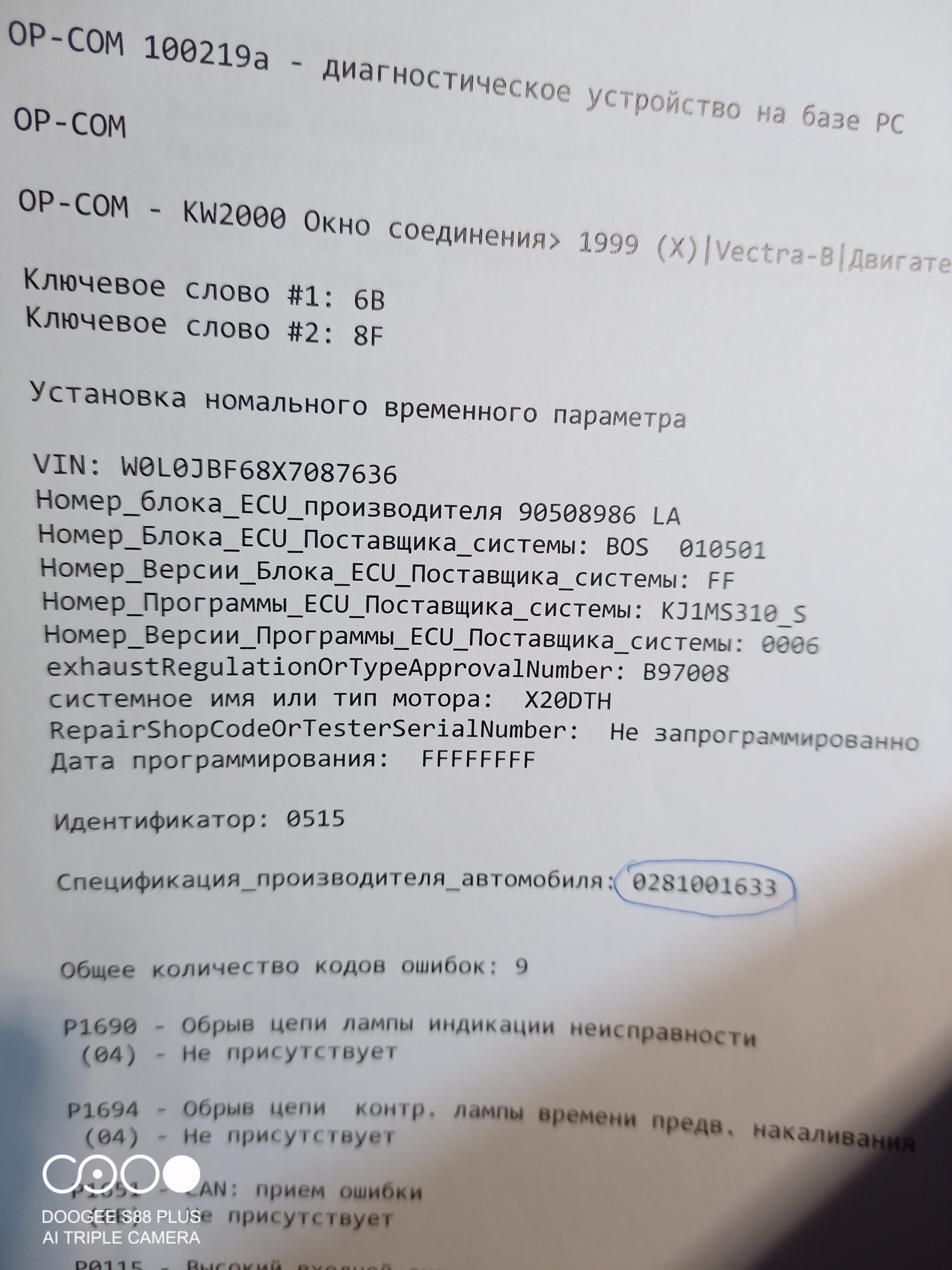 Модель (тип) ЭБУ: 0281001633 (90508986 LA)