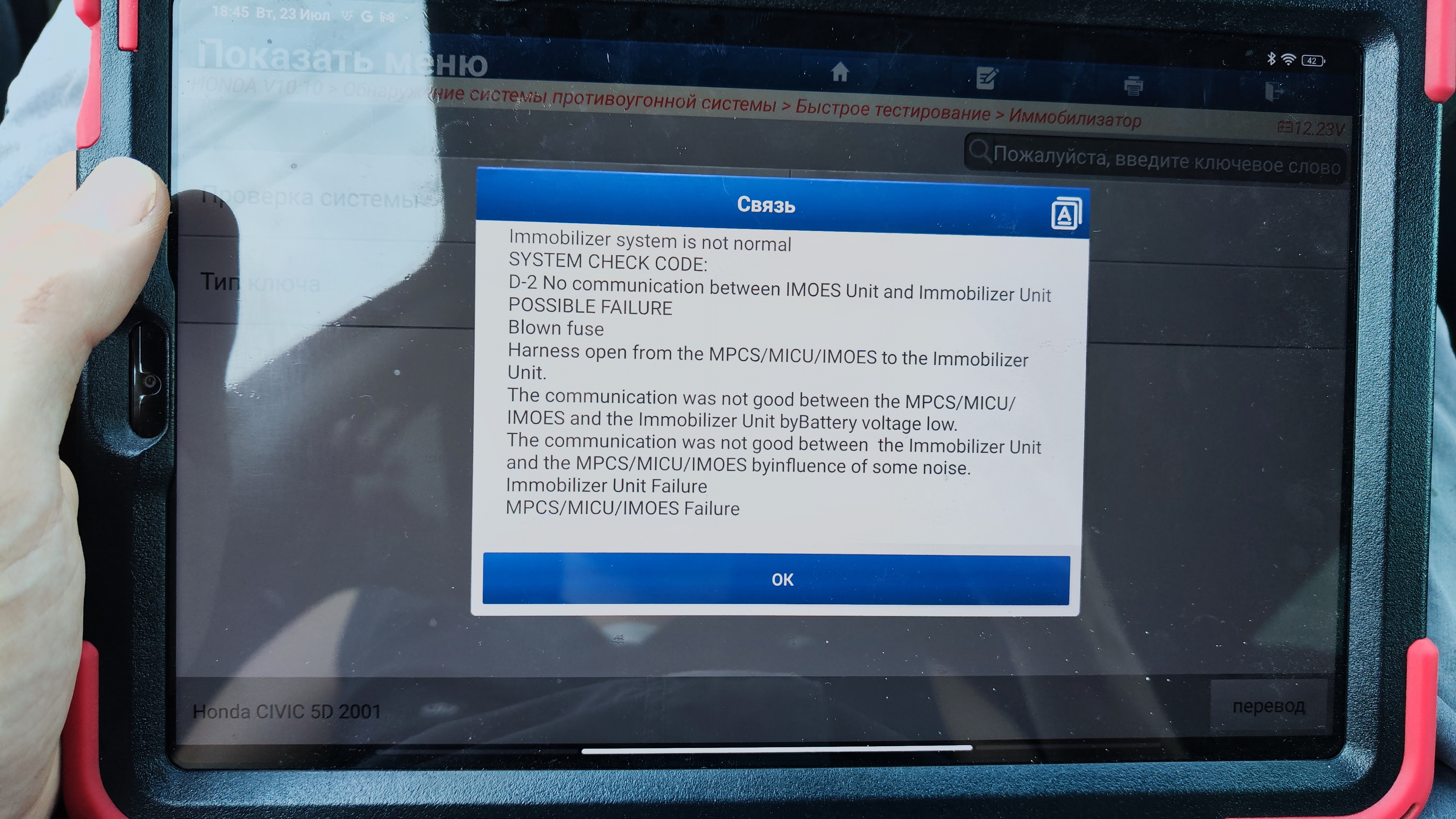 Honda civic 5d 2001 проблемы с иммобилайзером.