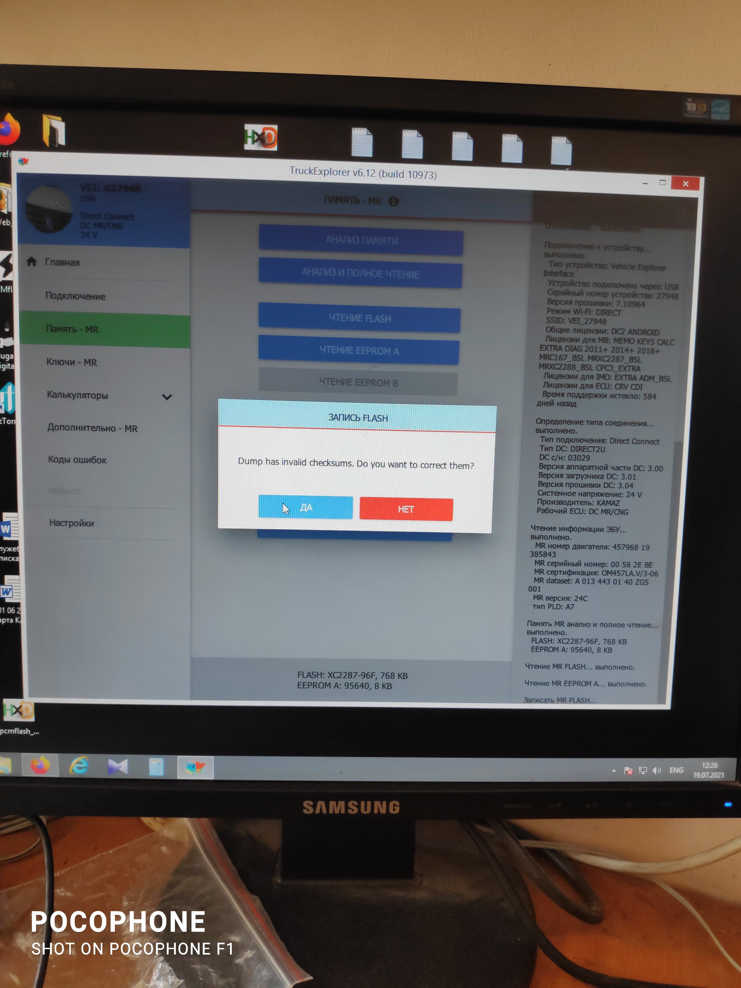 Приехал первый КамАЗ 5490 с цветной панелью. До этого делал обычные 5490 проблем не возникало, здесь есть засада горит чек но ошибок нет. Решение нашёл. На фото видно чек горит - до прошивки потом уже все норм - после прошивки. Делается всё как обычно- читается флешь и еепром, калибруются и записывается