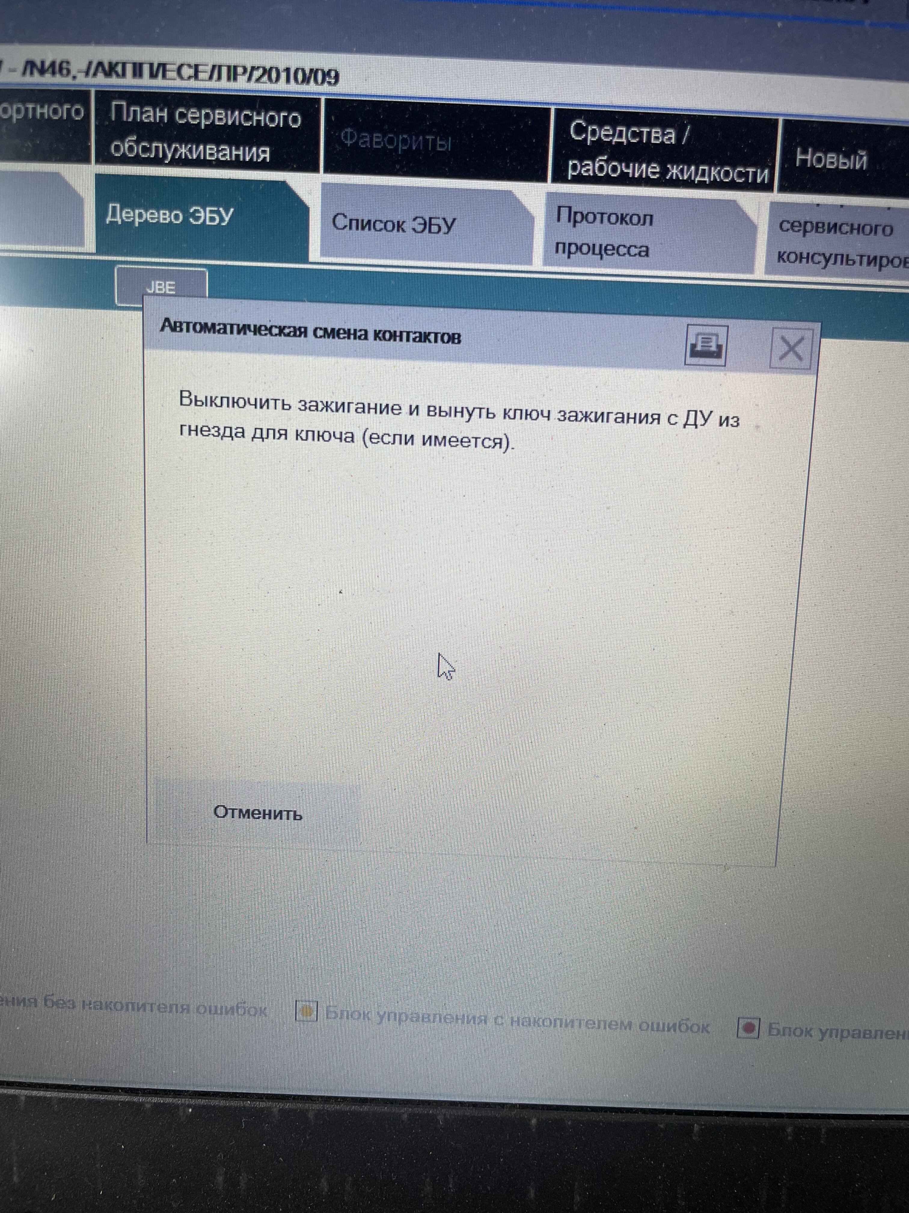 Всем привет, только начинаю работать с bmw установил ista 4.32 адаптер k dcan с переключателем, почему то не удаляет ошибки, пишет выключить зажигание и вытащить ключ и висит на этом сообщении, куда копать?