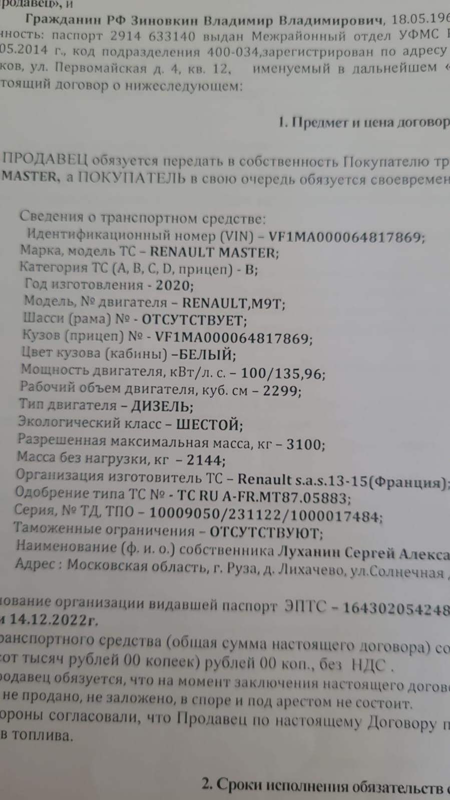 Добрый день. Позвонил человек, авто рено мастер 2.3 2020год 135л.с.